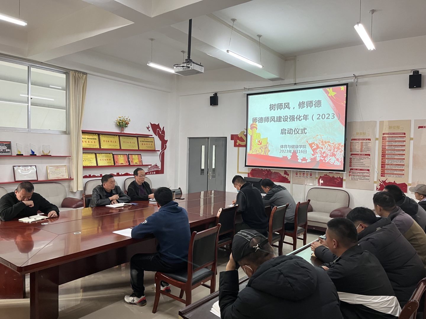 教育大计,教师为本;教师大计,师德为魂,为进一步加强我院师德师风建设水平,落实师德师风建设有关要求,不断推进学院各项工作高质量发展。3月16日,体育与健康学院在体育馆会议室举行“师德师风建设强化年”启动仪式,全体教师参加了启动仪式,活动由党支部副书记马鑫主持。