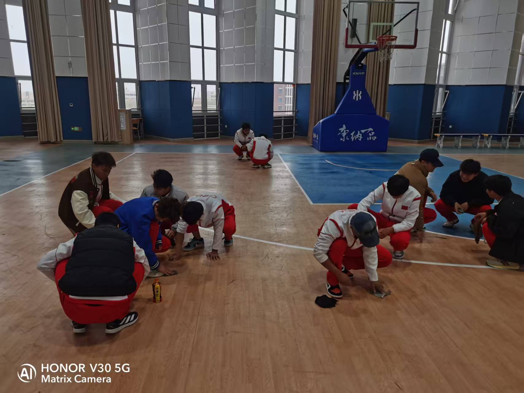 活动中,同学们分工细致、干劲十足。一组同学专注擦拭篮球场与排球场地板,不放过每一道划痕,让场地恢复整洁明亮;另一组深入实训室,认真清理器械、归置物品,为实训创造良好环境。大家齐心协力,不惧脏累,用辛勤的汗水诠释劳动精神。