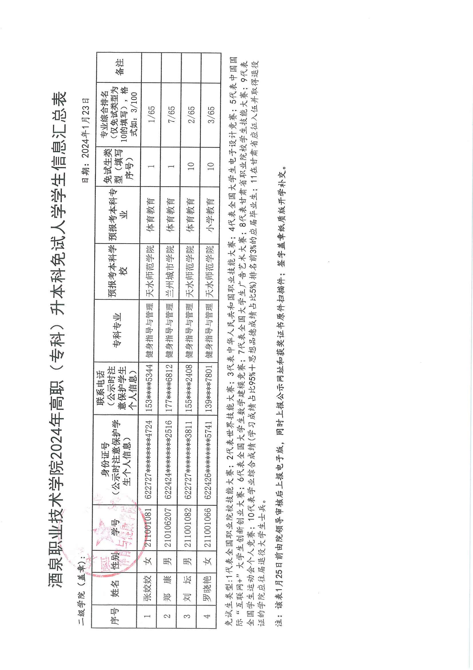 体育与健康学院2024年高职(专科)升本科符合免试入学考生资格名单公示